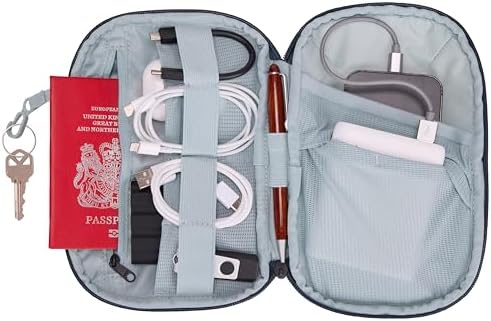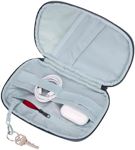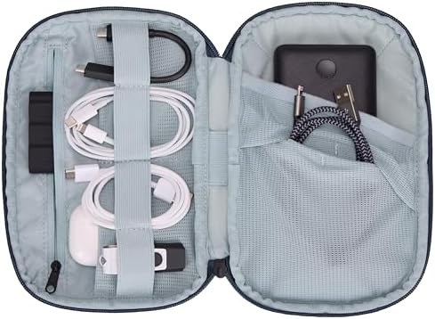 Organize a portable charger, cords, and accessories in a variety of secure pockets and elastic loops